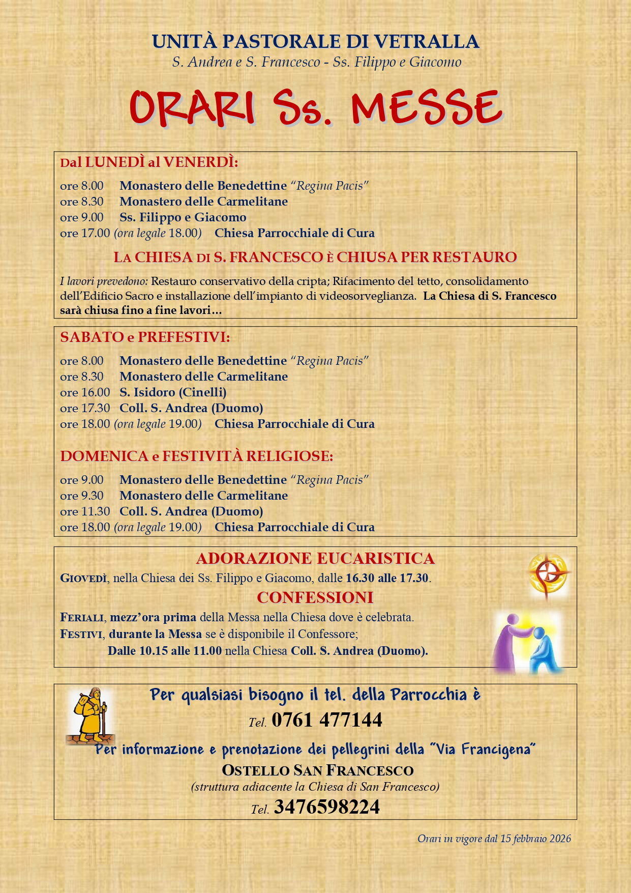 L'unità pastorale di Vetralla è stata costituita nel 2018. Unisce le Parrocchie di "S. Andrea e S. Francesco" e dei "Ss. Filippo e Giacomo".